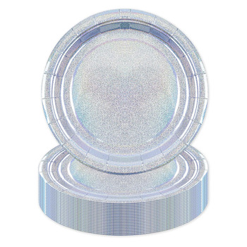 Piatti di carta iridescente in argento, usa e getta olografico iridescente carta scintillante per festa di nozze di compleanno della sirena